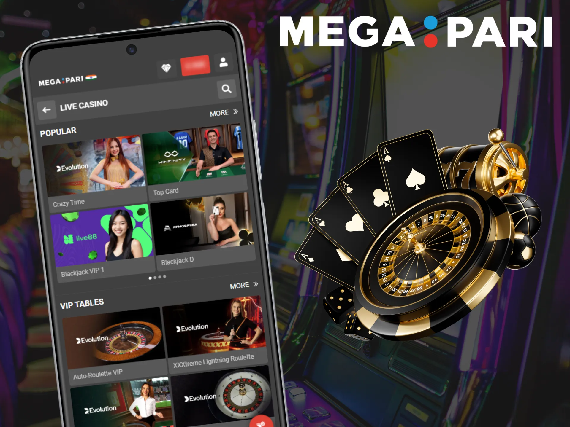 Megapari India live casino offers a premium online gaming experience featuring live dealers, engaging gameplay, and a diverse selection of games. The live casino will provide you with the excitement directly to your phone.